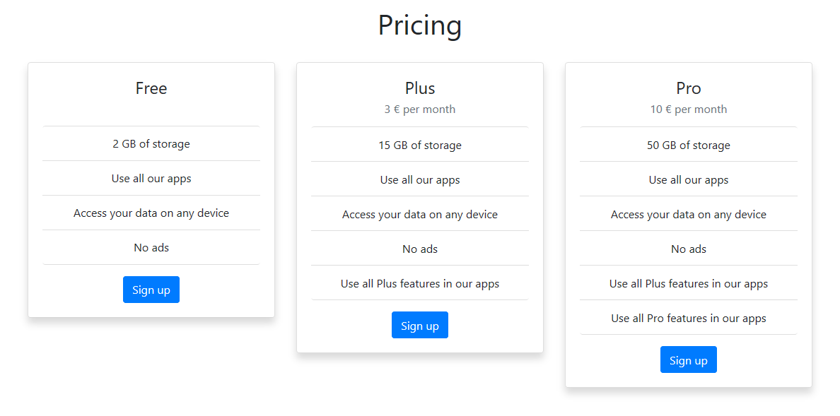 You can now upgrade to the new Pro plan, which lets you upload up to 50 GB of files for 10 € per month. But more importantly, you will have access to all pro features, which we will add in the coming months to our apps.