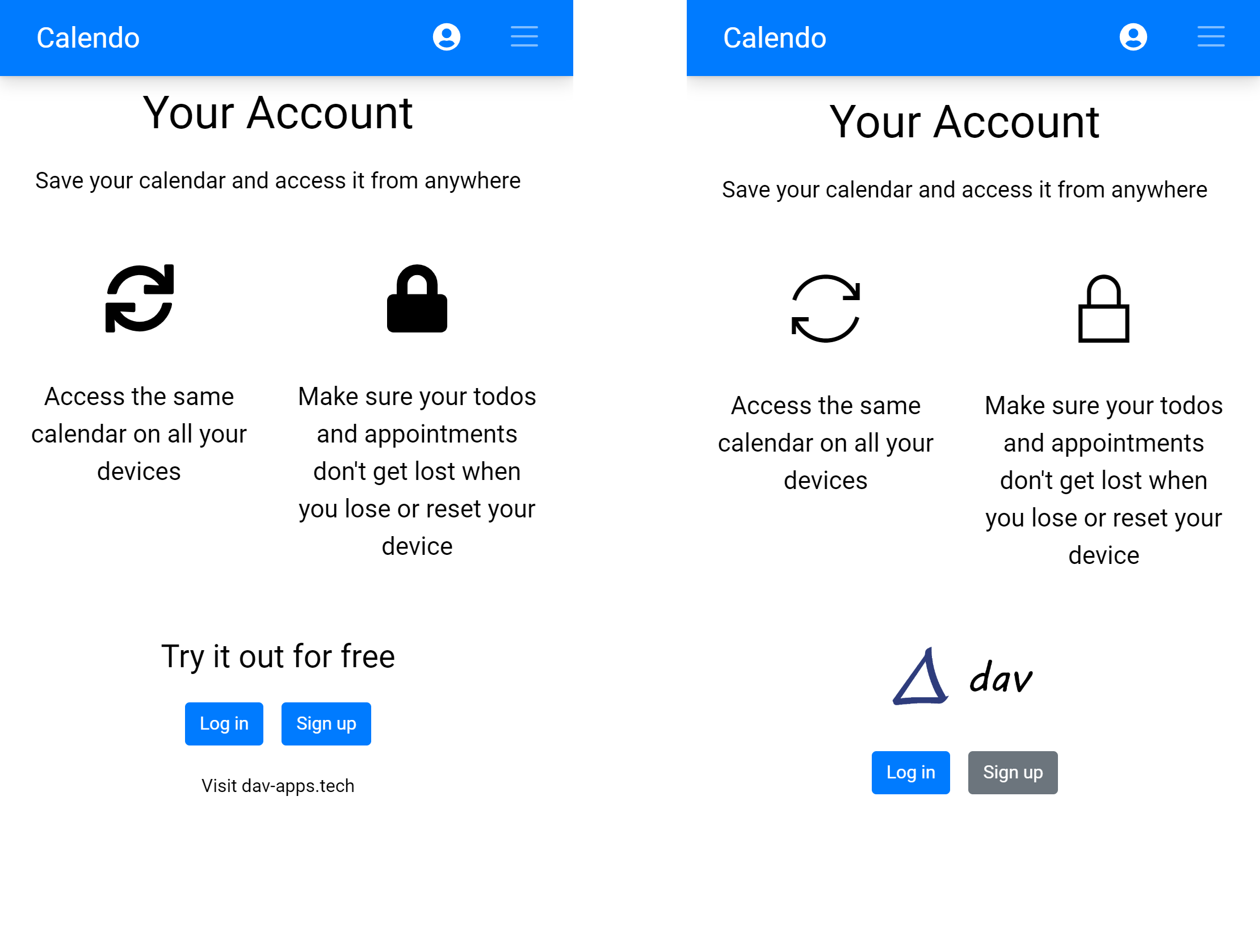 When you are not logged in, the Account page now shows the dav logo, which looks very nice. We are also using more modern and thinner icons.