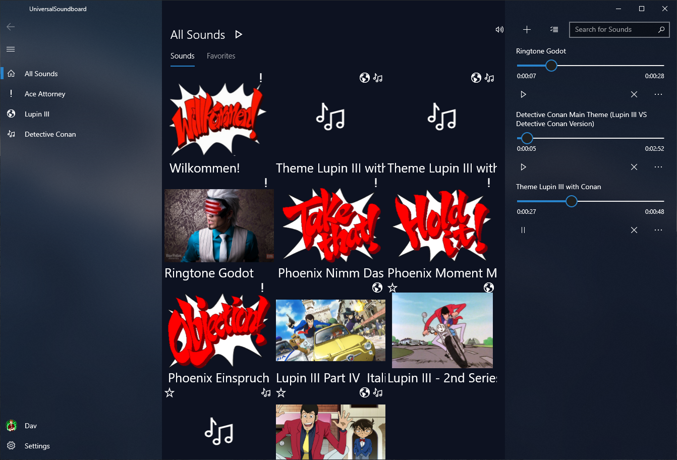 As you can see, the current version is essentially the same, but looks more polished. The panel on the right side for Playing Sounds was improved with Fluent Design, featuring blurred background and smaller buttons. Also the background color of the entire app was improved with a dark blue color, in contrast to the plain black in older versions.