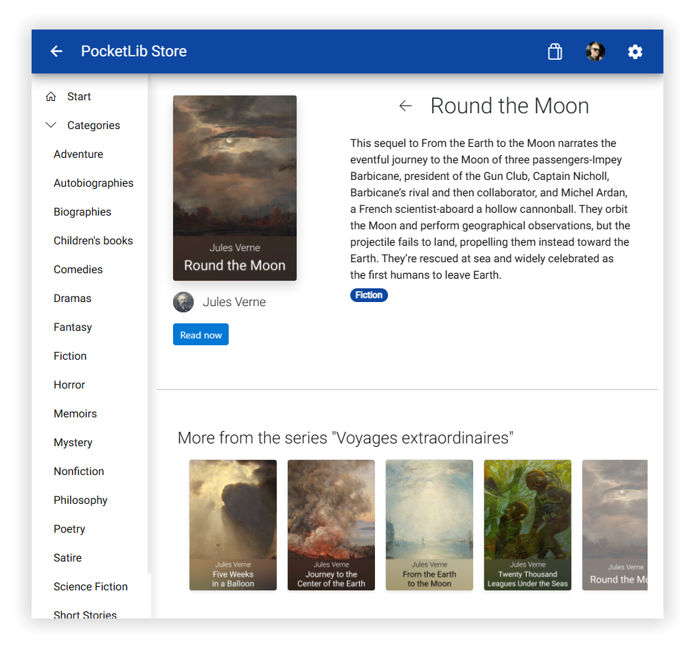 As you can already see above, the Store now has support for book series! This means that books in a series are displayed as a group. On the book page, if the book belongs to a series, all books in the series are displayed below the details.