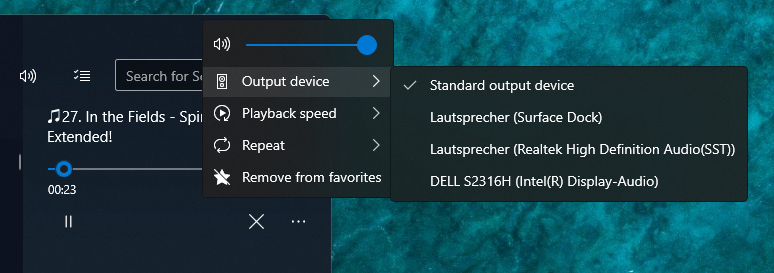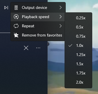 If a playing sound has a different playback speed or output device than the standard, it is indicated by a small button. Click this button to reset the playback speed or output device.