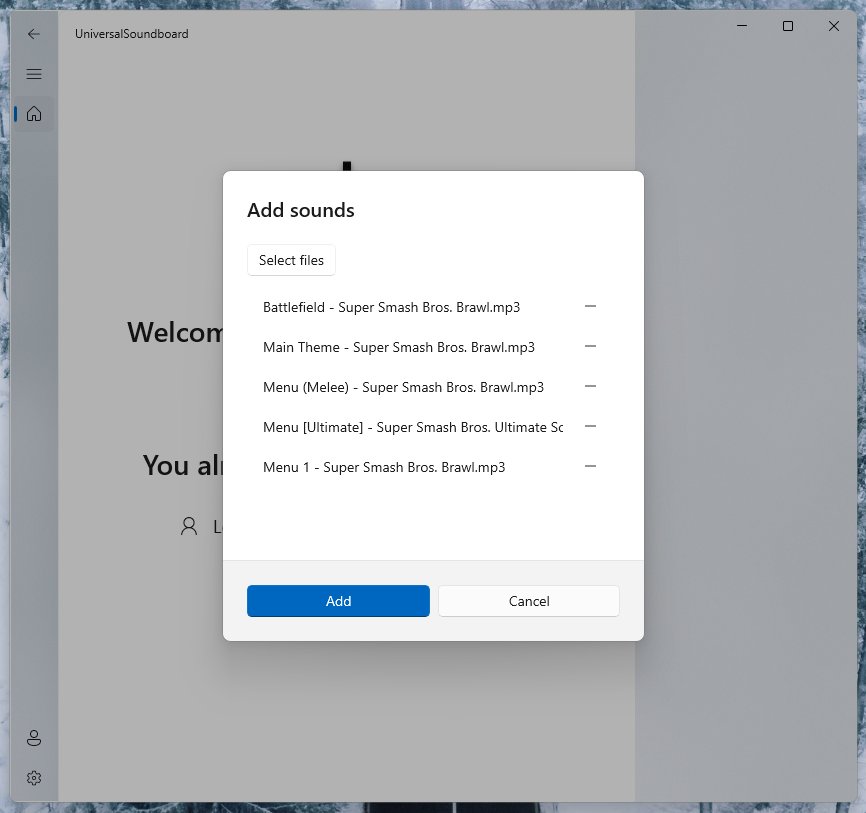 After selecting new sounds to add to your soundboard, you will now see a dialog with the selected sounds. There, you can add more files and remove specific files from the list.