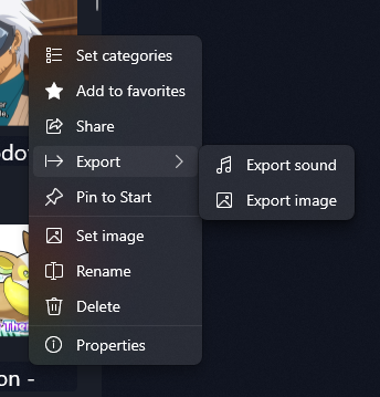You can now export the image file of a sound. Just right click on a sound with an image to see the option.