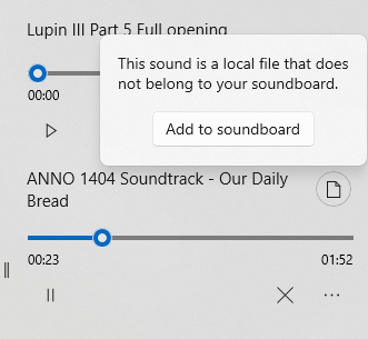 The icon on the opened sound will show you that the sound is a local file, with the option to add the sound to your soundboard.