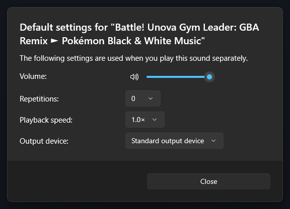 We added a separate dialog for the default sound settings, instead of using the sound properties dialog.
