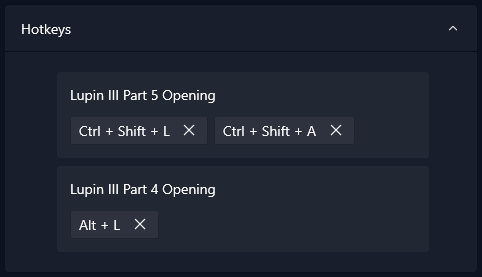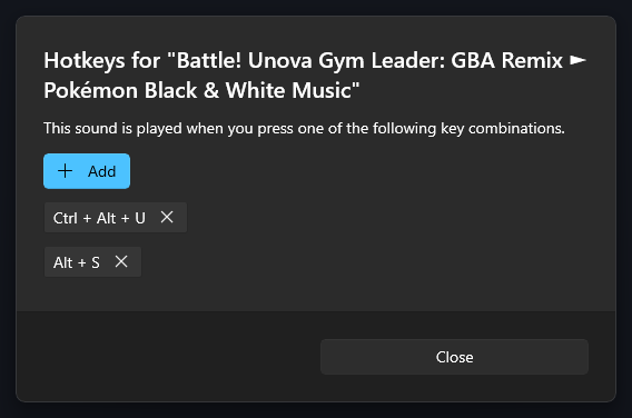 In addition to the default sound settings dialog, there is a new dialog for the hotkeys of a sound, removing this functionality from the sound properties dialog too.
