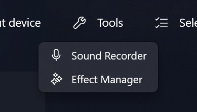 To make it more simple to find tools like the Effect Manager, we added a new tools button, where you can also find the Sound Recorder.