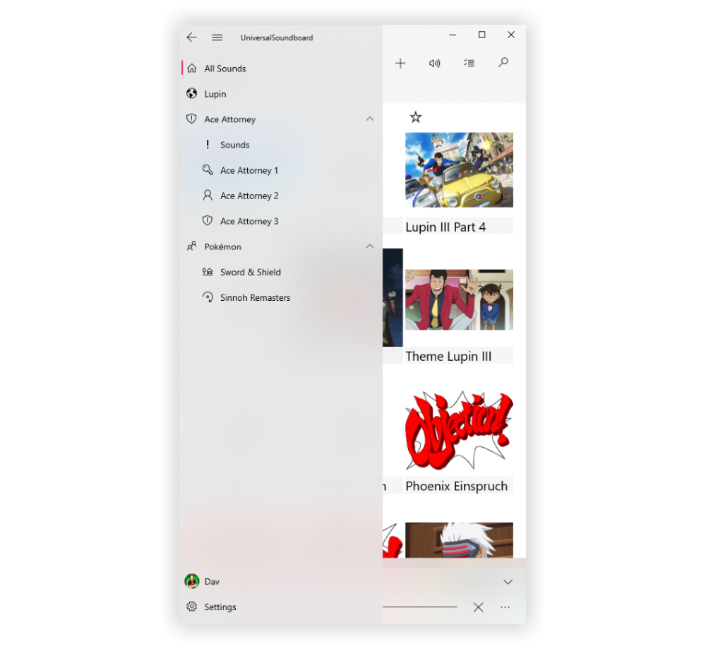 You can now display your sounds as a list, which shows the sounds with a small image and more space for the name. Just toggle the corresponding option in the settings to get this: