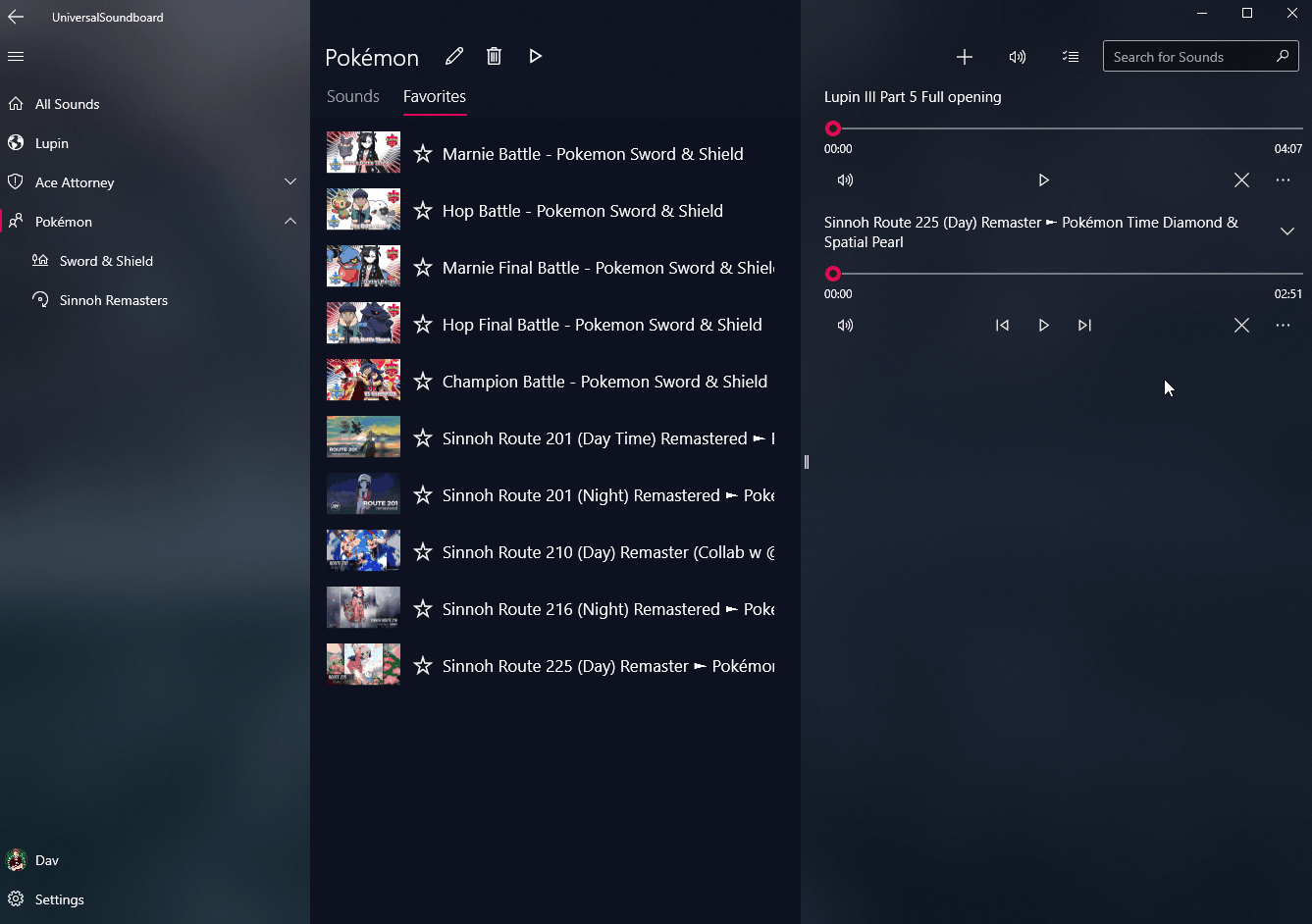 The bottom list for opened sounds, which is visible when the window is very small, now features proper snapping animations. The list is collapsed by default, showing the last opened sound. Drag it up to see the entire list.